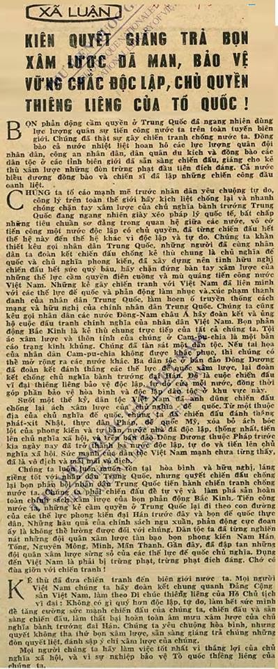 Xã luận báo Nhân dân số ra ngày 20/3/1979: